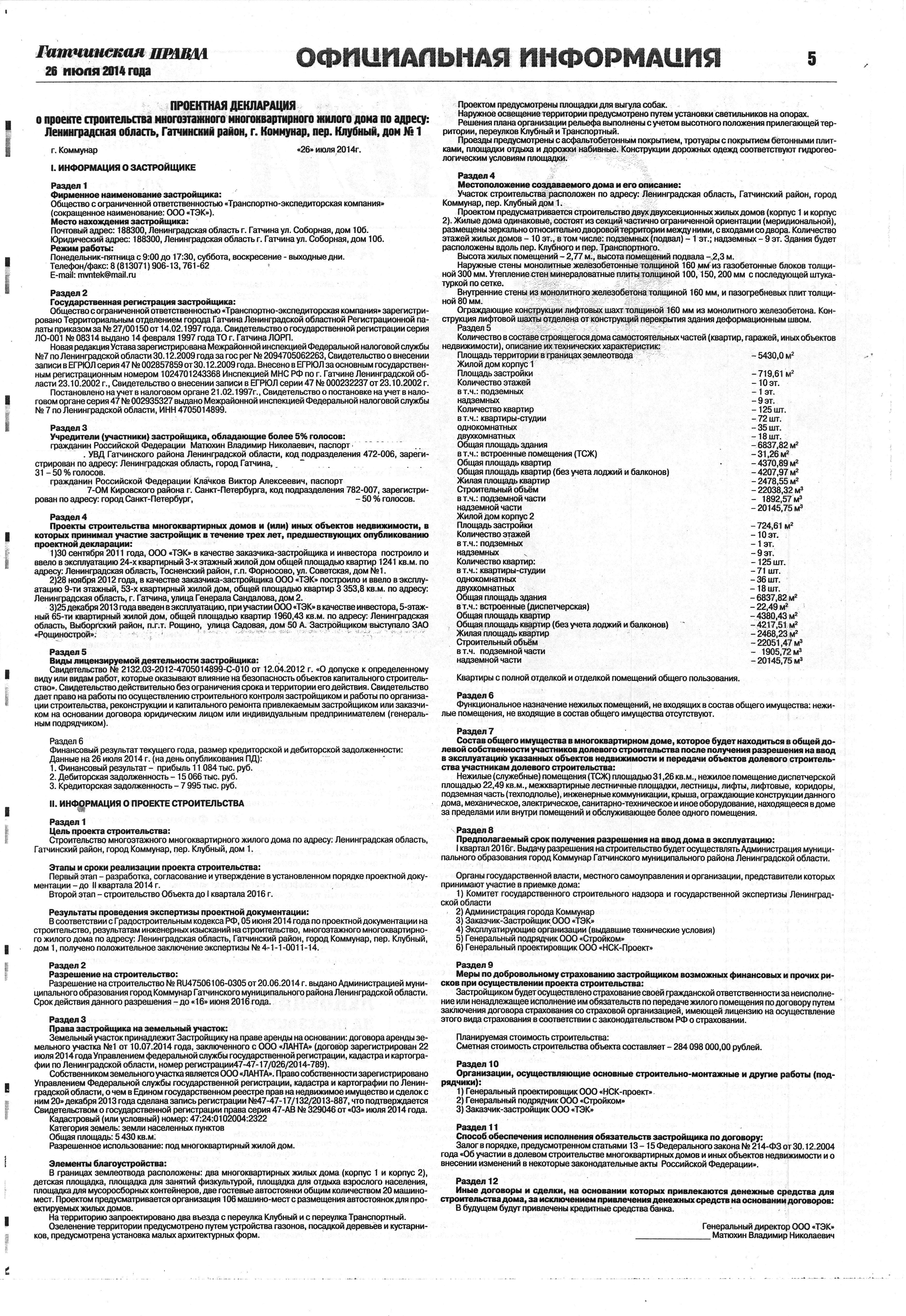Осенью 2008 года компания «ООО» ТЭК» ввела жилое здание в Гатчине. Весной 2009 года был сдан пятиэтажный дом на 80 квартир, площадь которого составила 4 198.56 квадратных метров. Осенью 2011 года было введено 24-квартирное трехэтажное жилое здание на 1 241 квадратный метр.