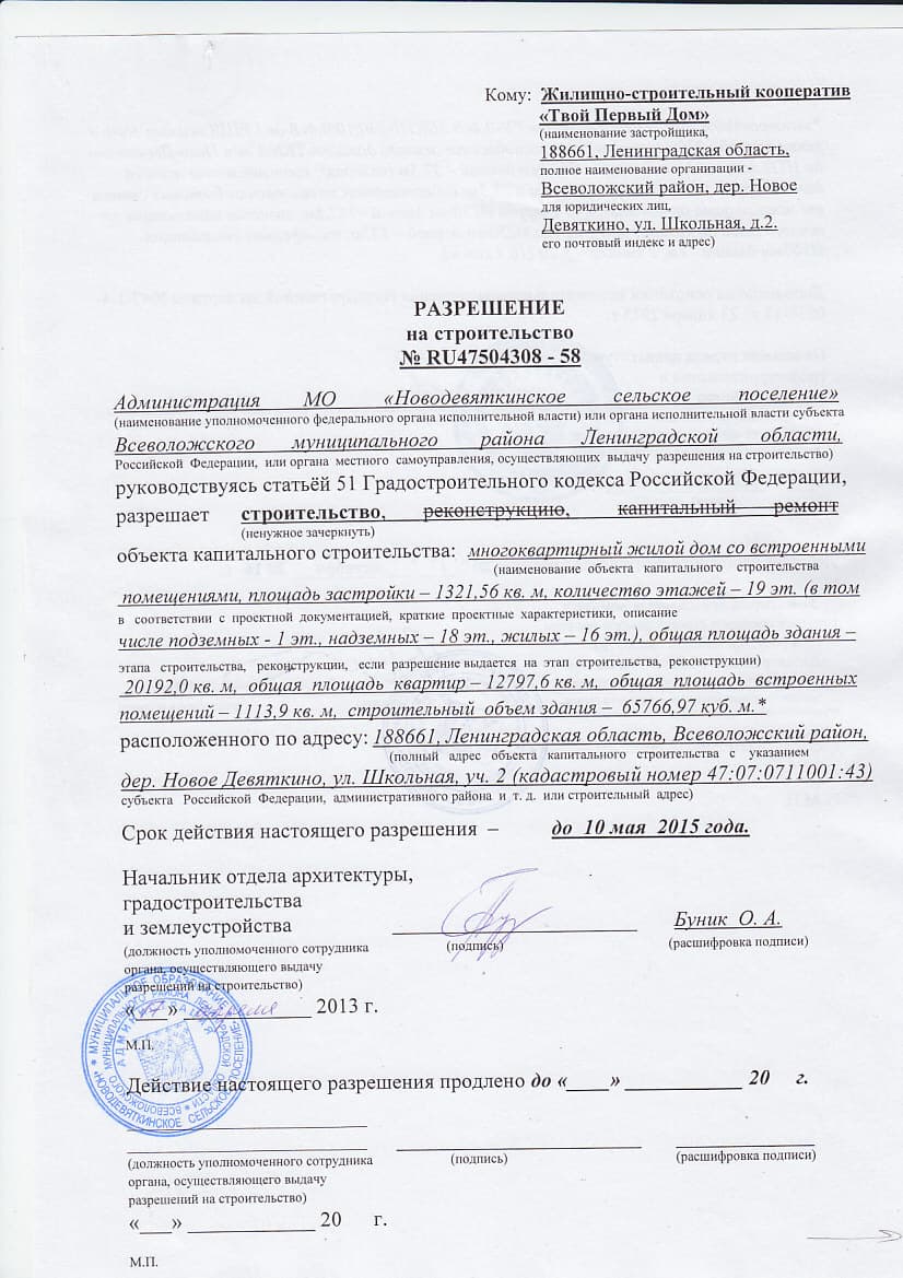 - Жилищно-строительных кооператив «Твой Первый Дом» -Застройщик.