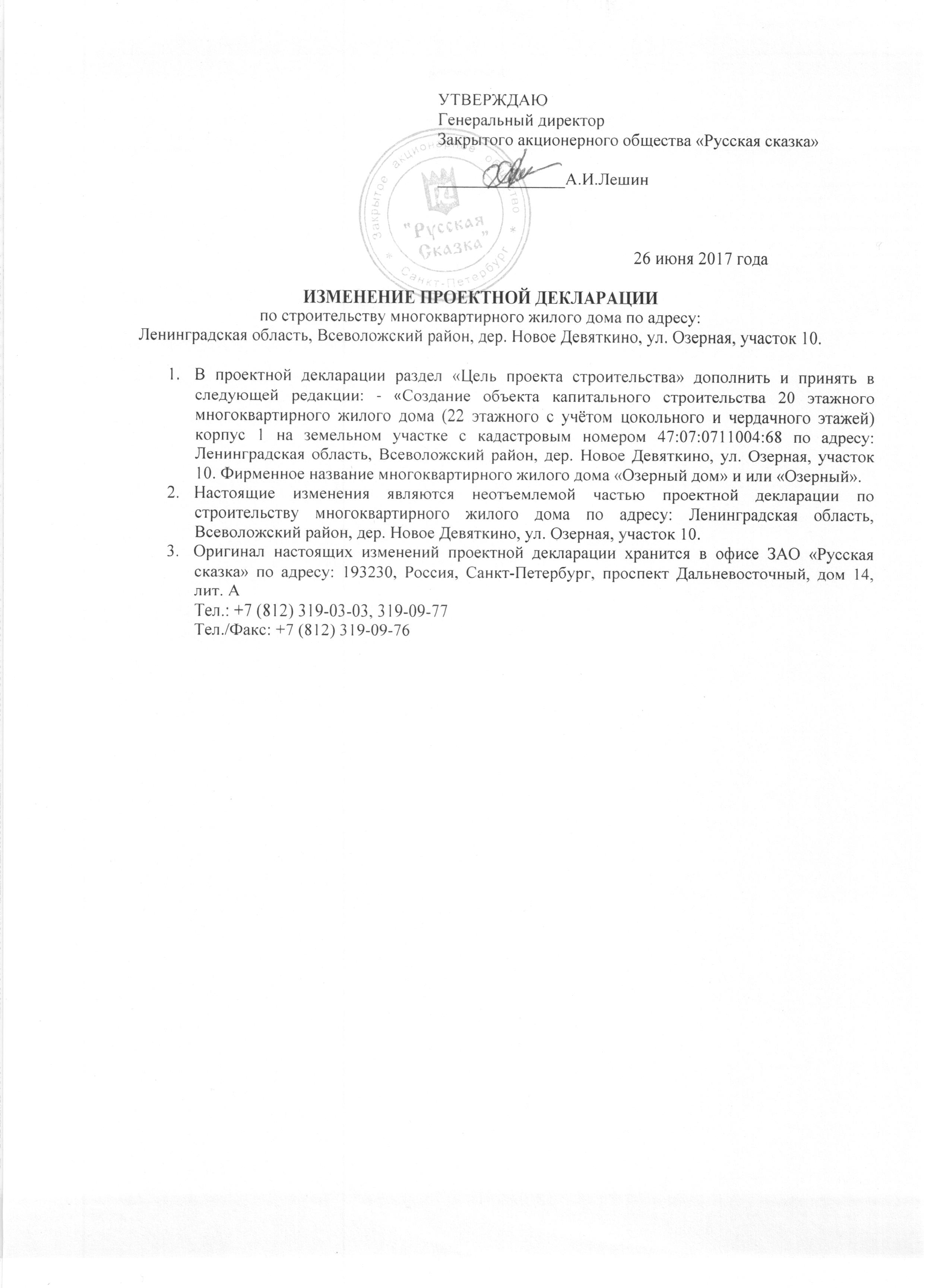 Застройщик Русская сказка