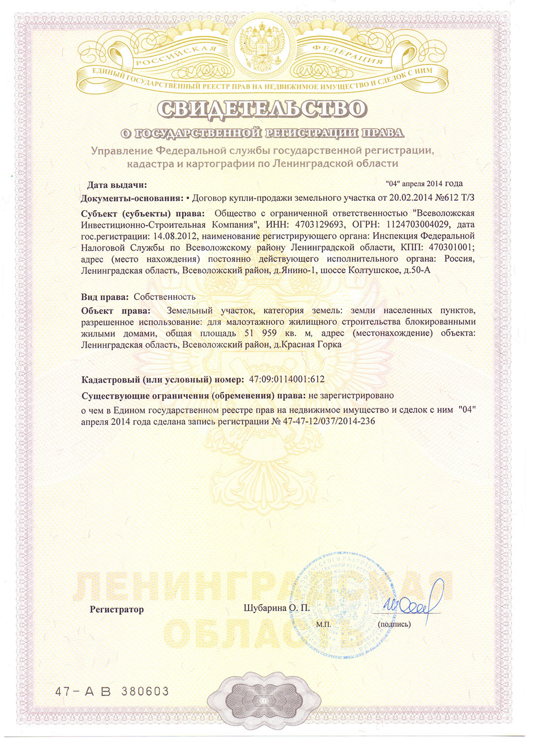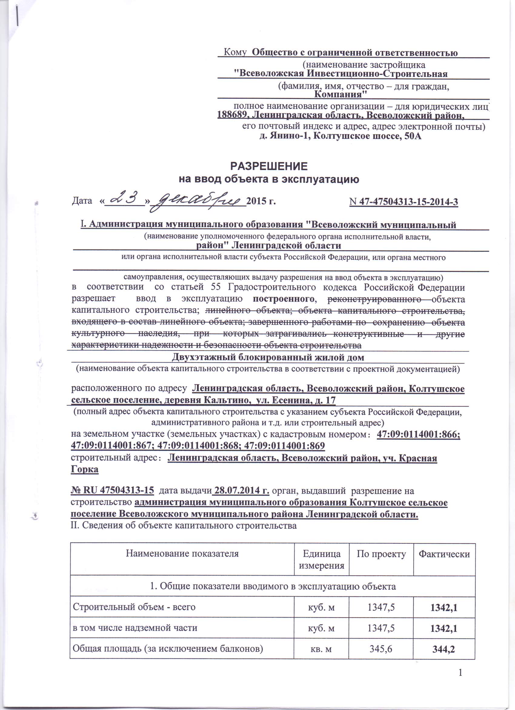 Застройщик ООО «ВсевИнвестСтрой»