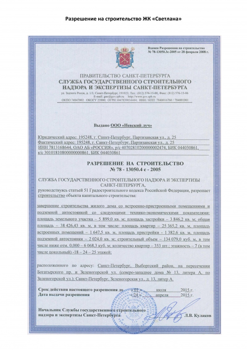 Застройщик ООО «Невский луч»