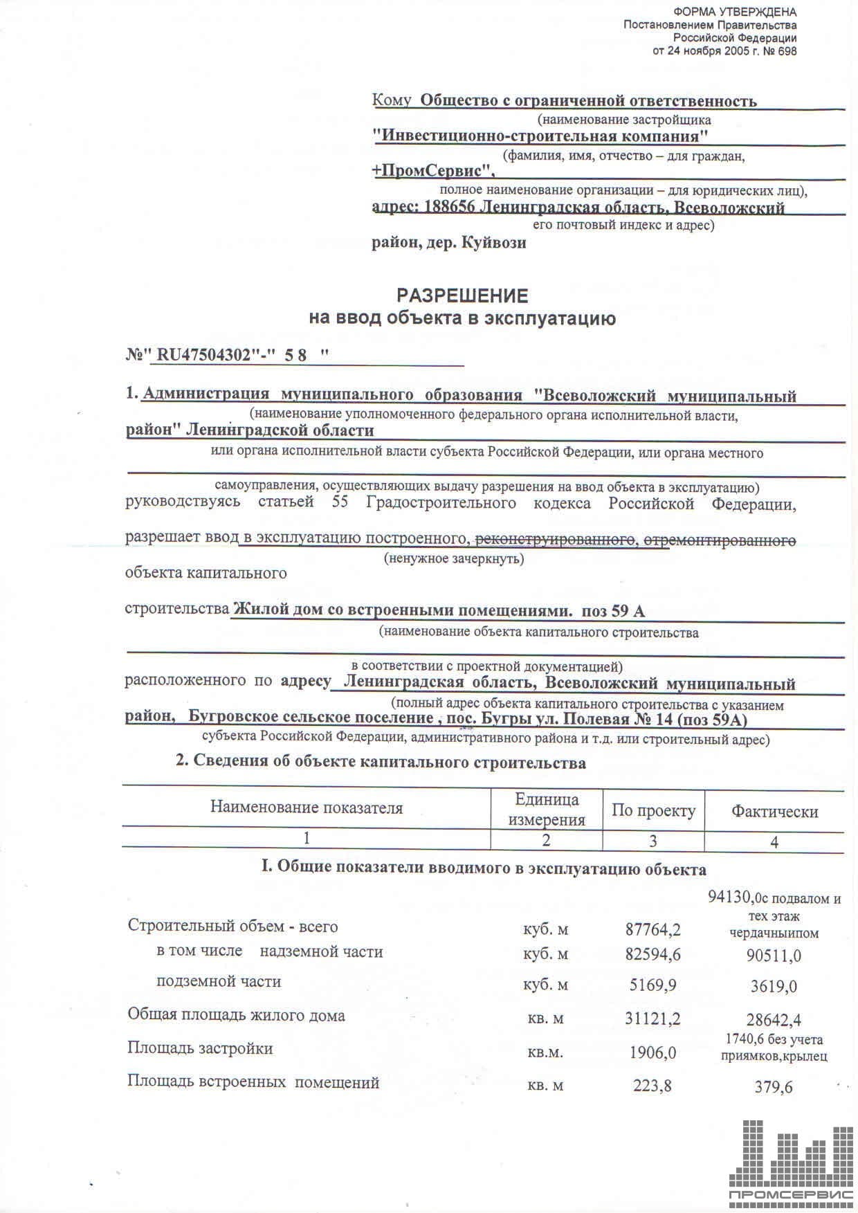 -ООО «Инвестиционно-строительная компания» ПромСервис» - Застройщик;