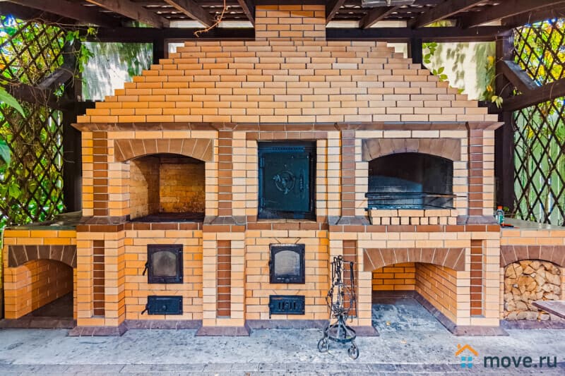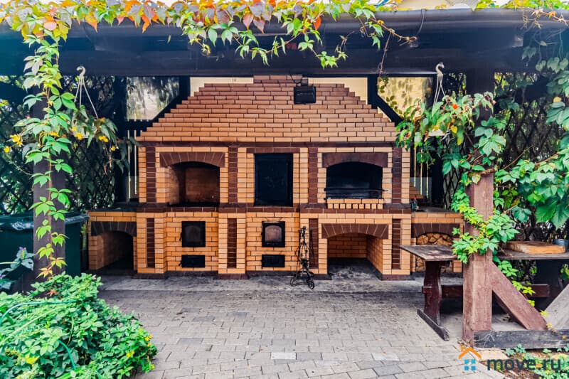 Участок 10 соток: банный комплекс (включён в стоимость) — русская баня, тёплый бассейн 10?4,5 м до +29°, душевая с обливным ведром, санузел, комната отдыха, застеклённая веранда; две крытые террасы со столами и скамейками; крытая мангальная зона с большой печью, казаном и коптильней; зелёная лужайка, ели; парковка на 6 авто.