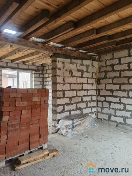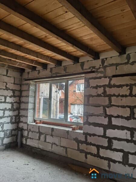 Отделка: черновая; фундамент ленточный; стены внутри газобетон, снаружи кирпич; окна стеклопакеты (окна ориентированы на юго-запад, северо-восток), крыша внутри ветрозащита, снаружи - металлочерепица.
