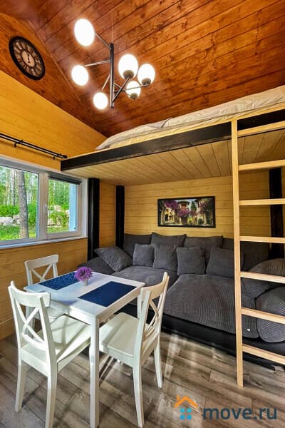 Уютный домик для семьи с детьми на территории загородного клуба. Цвелодубово, 60 км от КАД. Компактный дом 36 м? с двуспальным диваном и ярусной кроватью, тёплыми полами и всем необходимым для комфортного отдыха молодой семьи.