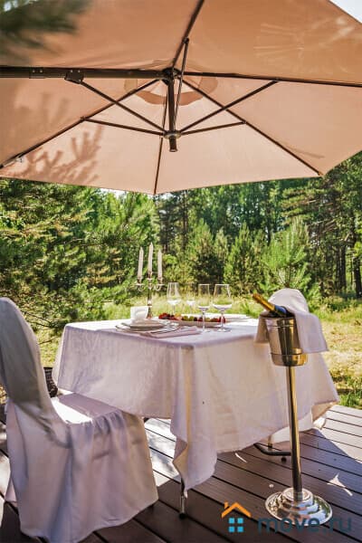 - Романтичная опция: можно заказать ужин в прозрачной сфере у пруда с лебедями.