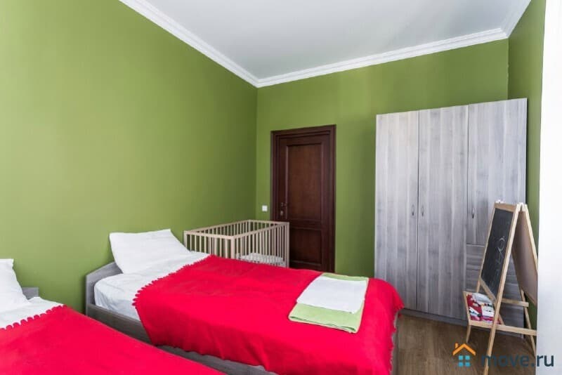 - Простор для 13 гостей: 5 светлых спален на двух этажах, гостиная с камином, кухня-столовая, Wi-Fi и настольные игры.