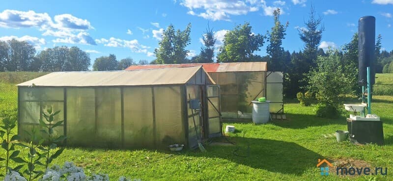 ? Обустроена садово-огородная зона: три теплицы, хозяйственный блок для хранения инвентаря с дровяником. Газон, плодово-ягодные деревья и кустарники: 3 яблони, 3 груши, 7 вишен, 4 сливы, 3 красной смородины, 3 чёрной смородины, крыжовник. Цветы.