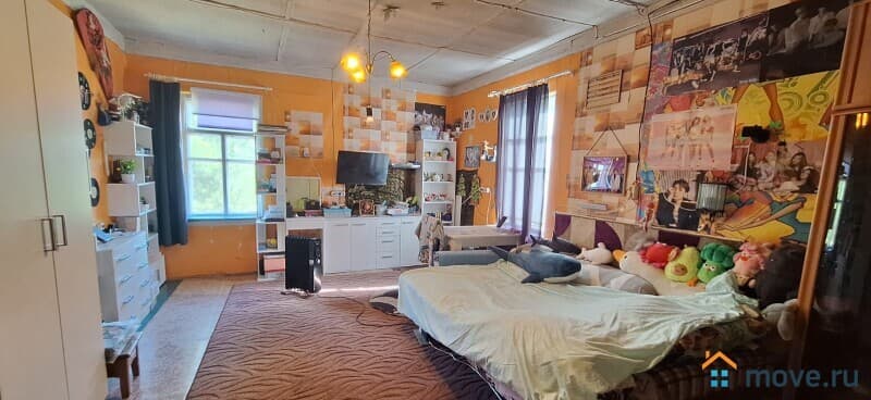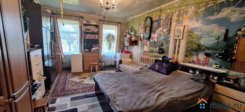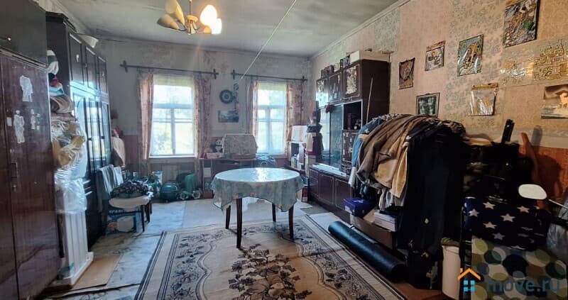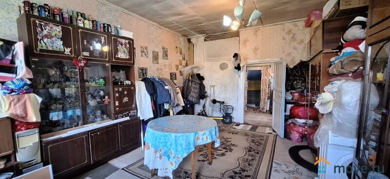 ? ДОM жилой бревенчатый 12,5x10.3 м. Общая площадь 116,8 кв.м., жилая - 64.5 кв.м. Три большие изолированные комнаты: 20,9+20,8+22,8 кв.м., две кухни: 18,5 и 8,8 кв.м., коридор-прихожая 18,0 кв.м. Высокий потолок. Три больших подвала, чердак. Фундамент бутобетонный, крыша шифер.