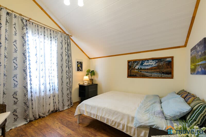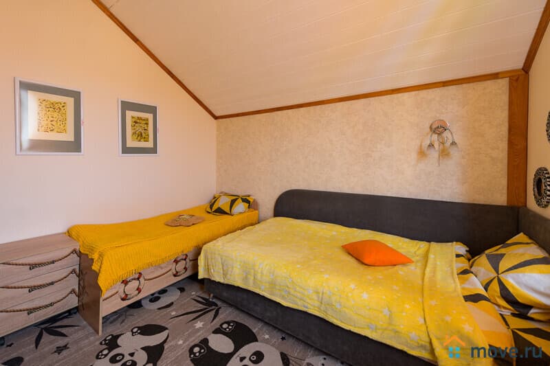 2 этаж: 4 спальни — с двуспальными, односпальными и двухъярусными кроватями, в одной — детская кроватка; санузел с душем, туалетом, феном, стиральной машиной.