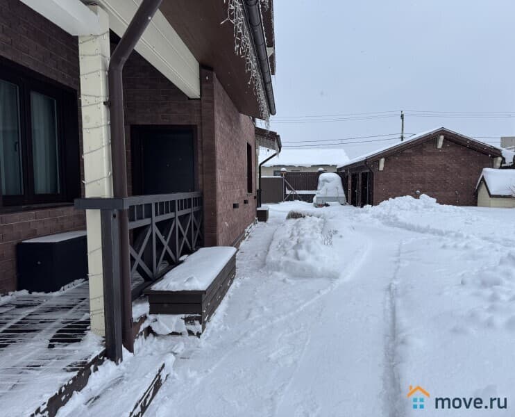 На территории — дом, спа-комплекс, эллинг, гараж, теплица. Территория полностью огорожена забором, оснащены въездные откатные ворота. Дом полностью самодостаточен.