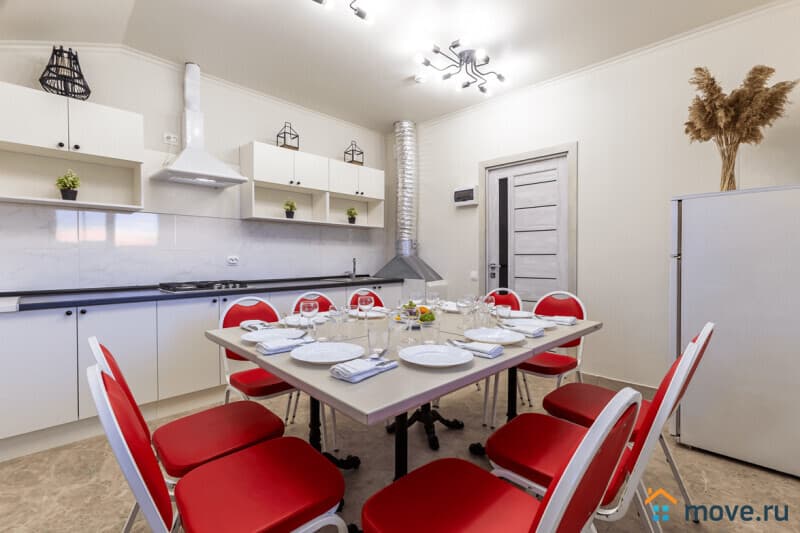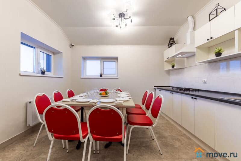 Коттедж рассчитан на проживание до 32 человек, на дневное мероприятие — до 40 гостей.