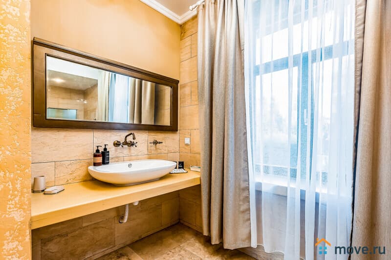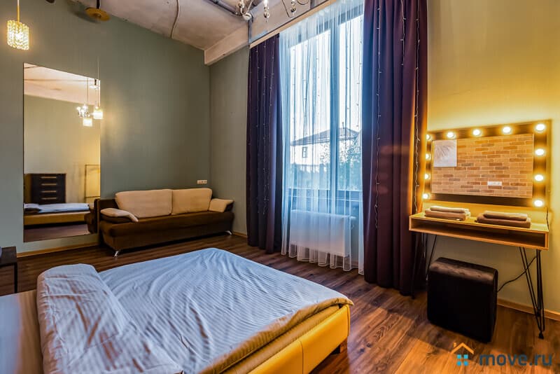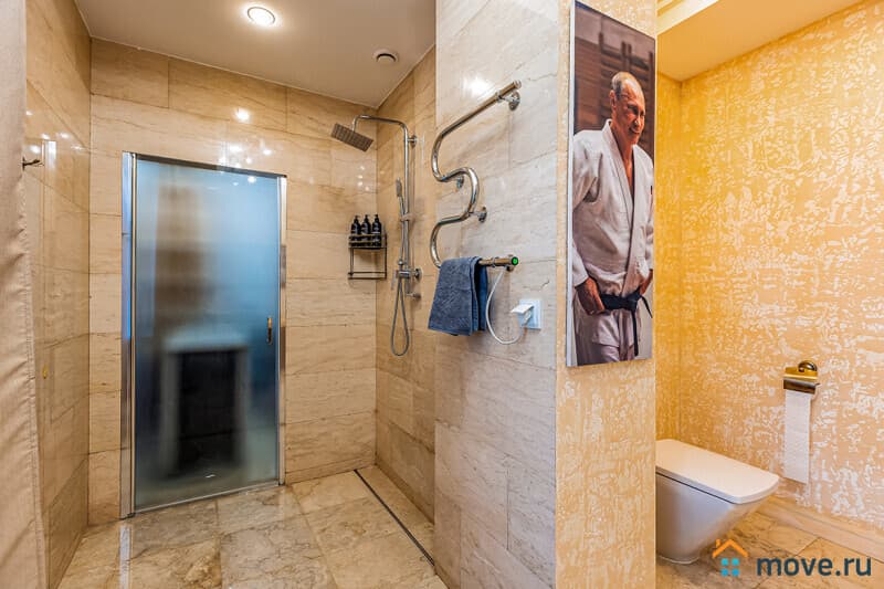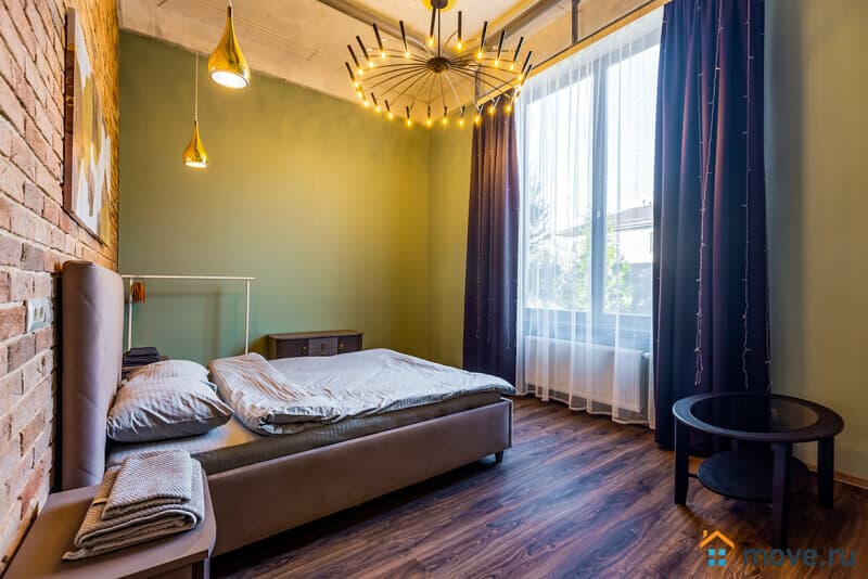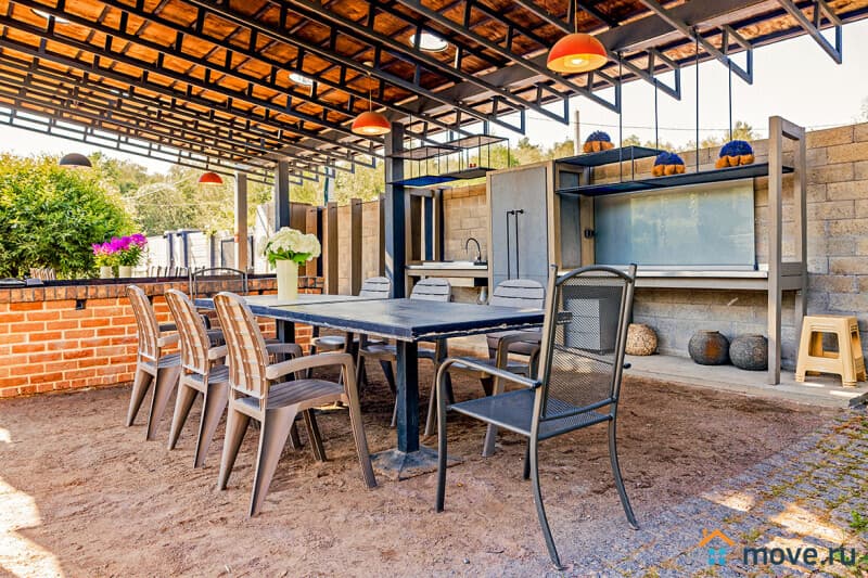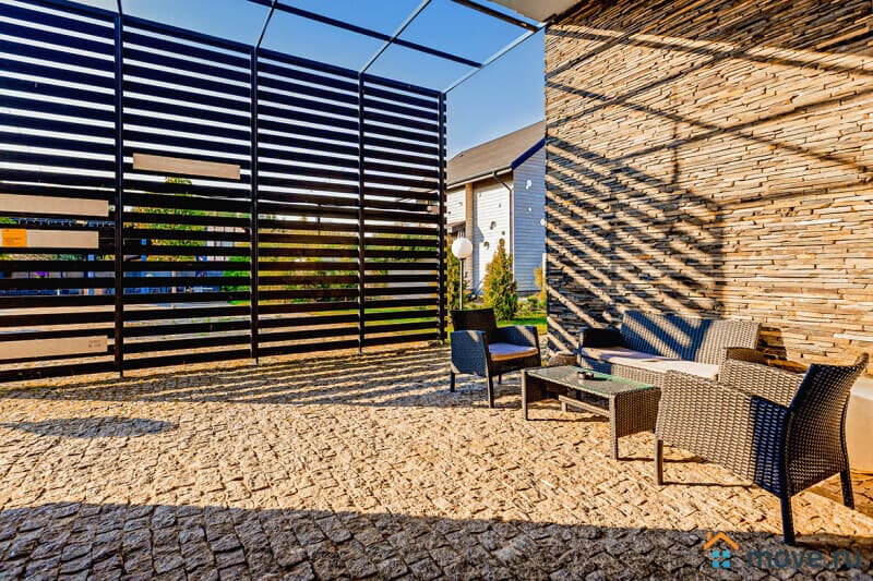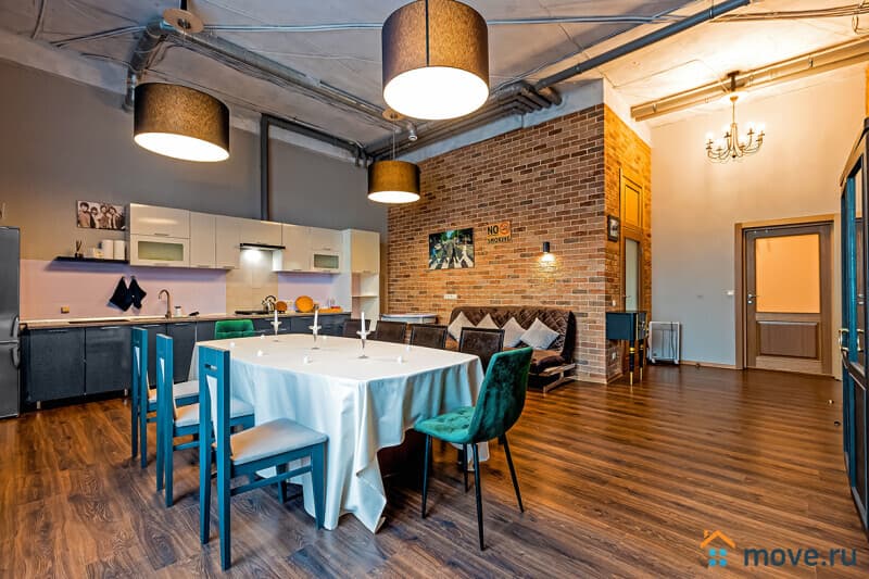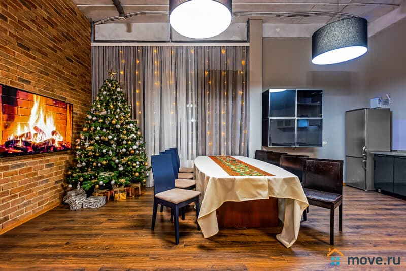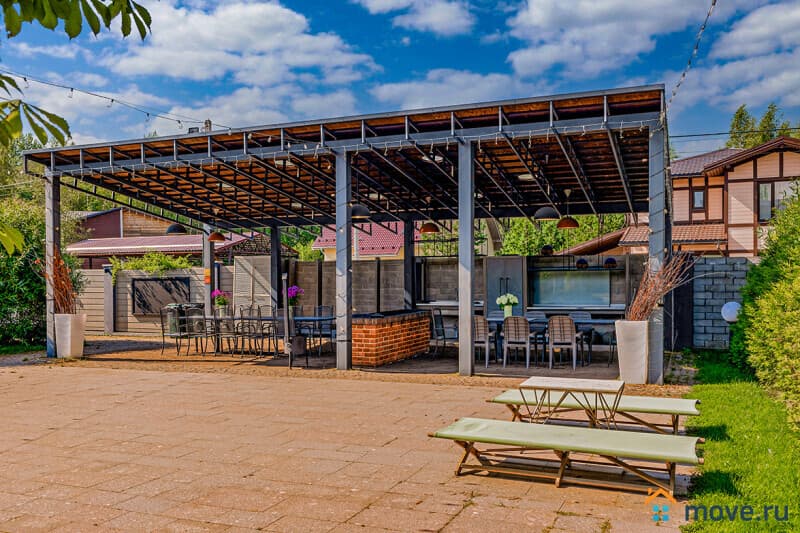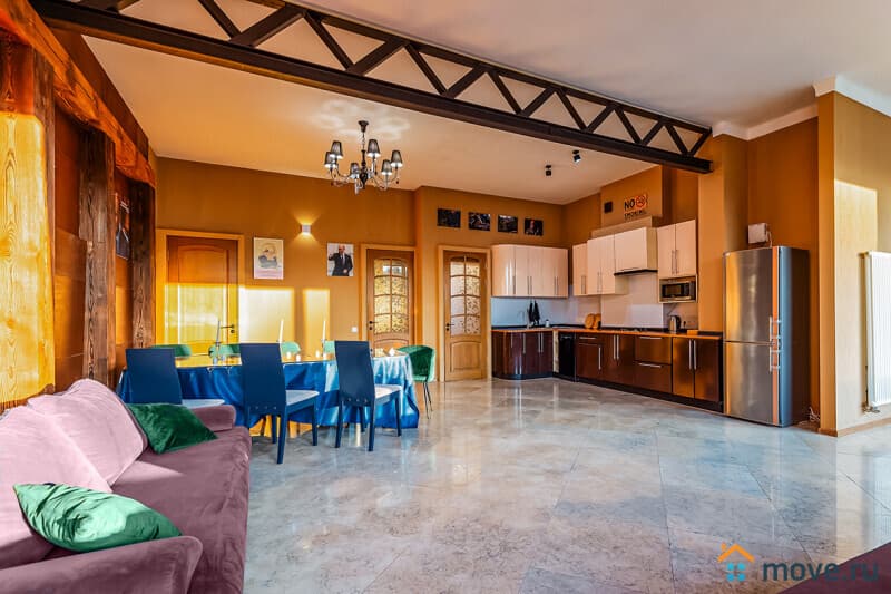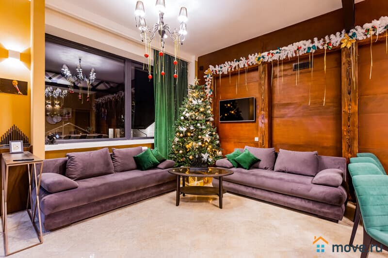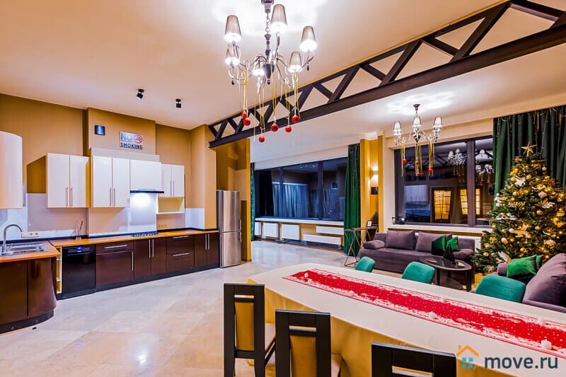 Общая площадь дома — 248 кв.м. На каждом этаже собственный вход. В распоряжении гостей две кухни-гостиные (50 и 65 кв.м.), оснащённые всей необходимой техникой — холодильником, посудомоечной машиной, плитой, микроволновкой, чайником, посудой. Просторные обеденные зоны рассчитаны на 10 человек каждая. В доме четыре спальни с двуспальными кроватями и диванами, два санузла с душевыми и средствами личной гигиены. Есть стиральная машина, Smart-TV, Wi-Fi, тёплые полы. Для детей подготовлены игрушки, раскраски и настольные игры.