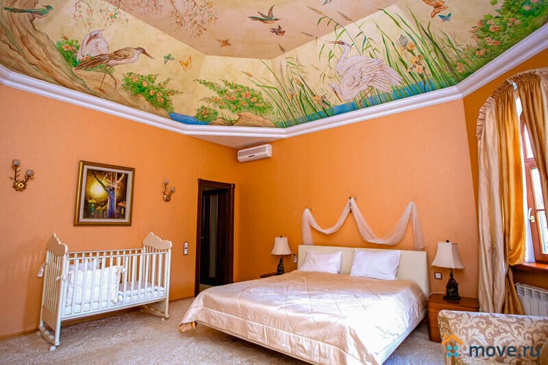 2 этаж: спальня с двуспальной кроватью, креслом-кроватью, детской кроваткой и балконом; спальня с двуспальной кроватью; спальня с двуспальной кроватью; санузел с ванной-джакузи и душем.