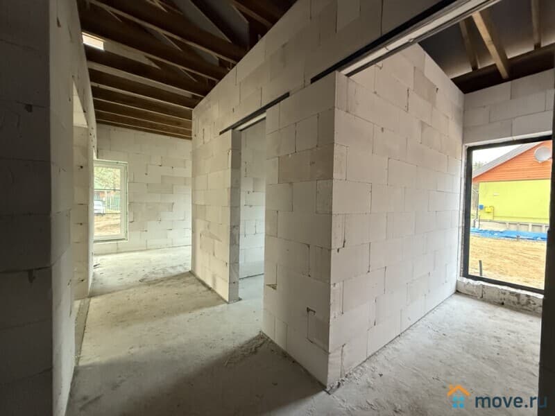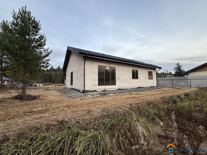 Жилой дом из газобетона одноэтажный 2025 года постройки. Хорошая площадь и планировка дома позволит разместиться всей семье: гостинная-столовая 21,9 кв.м с панорамным окном и проходом в отдельную кухонную зону 12,5 кв. м., между кухней и гостиной выход на планируемую террасу, есть большой санузел 6,1 кв.м и помещение котельной или прачечной, три изолированные спальни 15,4+15+14,5 кв.м со своим небольшим санузлом.