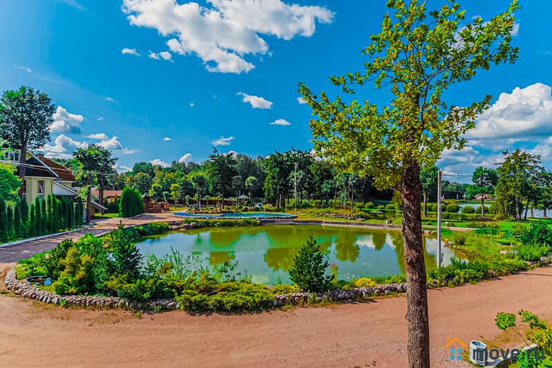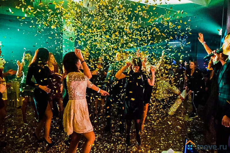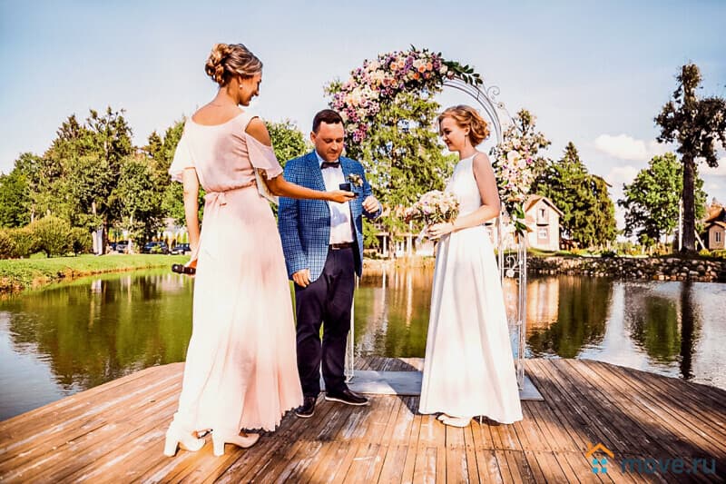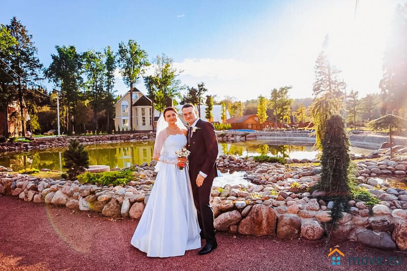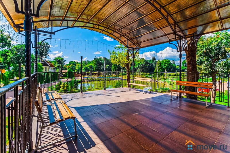 Уникальная площадка для свадьбы или юбилея: банкетный зал на 100 гостей, фуршетная зона, терраса и панорамная крыша 200 м? с видом на территорию 2 гектара. На территории — коттеджи, банный комплекс с бассейном, пруды и спортивный комплекс.