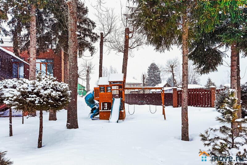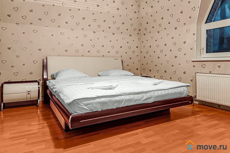 На 1 этаже гостиная с мягкой мебелью, ТВ и музыкальным центром, кухня с техникой и посудой на 20 гостей, санузел и ванна. На 2 этаже — 6 спален (всего 14 спальных мест + доп. места), санузел и душ. Территория с яблоневым садом, лужайкой, беседкой и мангалом.