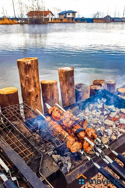 На ухоженном участке 12 соток: терраса-балкон с выходом из гостиной, терраса-пирс на воде, мангальная зона рядом с пирсом (шампура, решётка, розжиг 100 руб., угли 300 руб.), парковка на 3 автомобиля.