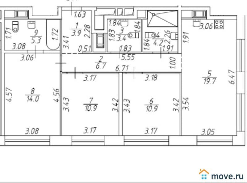 Общая площадь 79 кв.м, изолированные комнаты 14+10.9+10.9 кв.м, кухня 19.7 кв.м. Гардеробная. Панорамные окна.