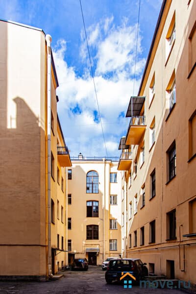 Фасадная часть дома выходит на 1-ю Линию ВО. Вход в квартиру со стороны ул.Репина. Окна квартиры в тихий закрытый двор.