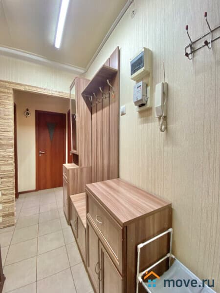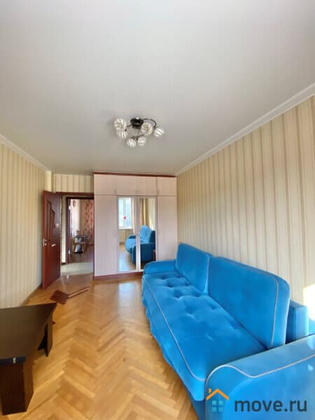 Состояние квартиры хорошее, можно въехать и жить сразу после покупки. В квартире остаются мебель и техника, включая телевизор, холодильник, стиральную машину и СВЧ печь. Пол паркетный. Входная дверь двойная, внешняя металлическая, внутренняя деревянная, что обеспечивает дополнительную звукоизоляцию.