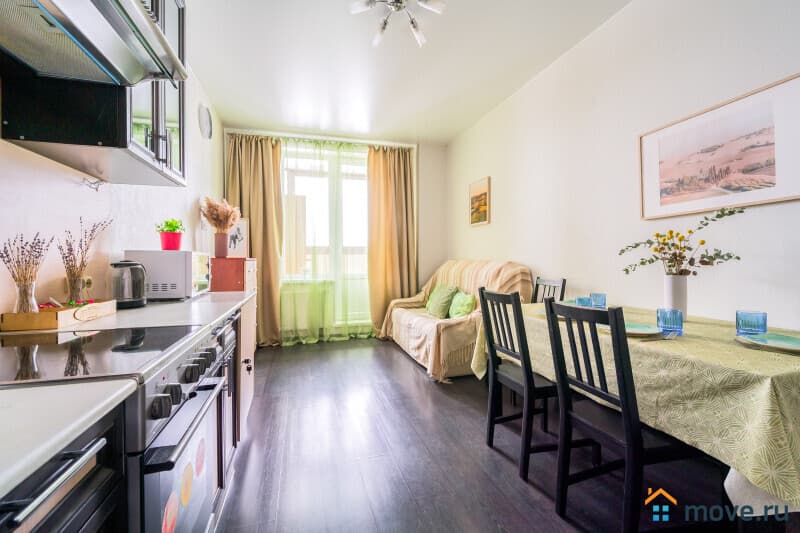 Большая и светлая 1-комнатная квартира в современном доме, есть консъерж. Удобные спальные места, в кв приятно находиться, много воздуха и света, есть застекленная лоджия.