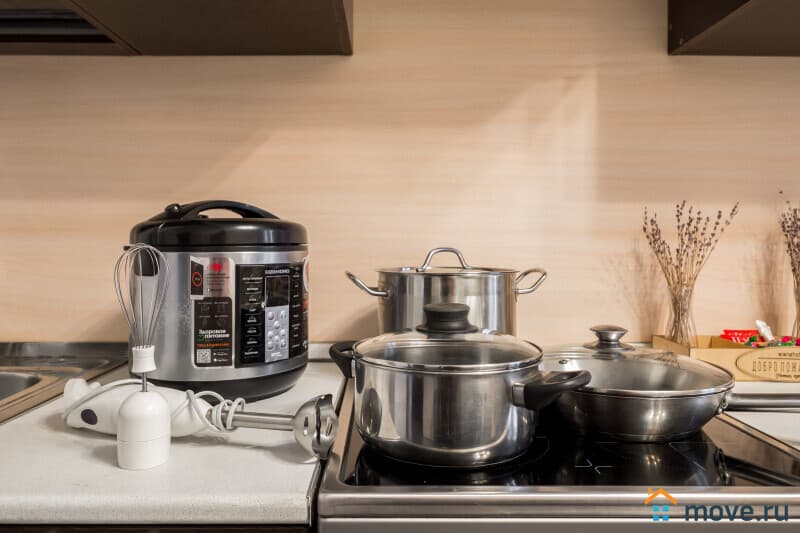 * Современная мебель и ремонт, имеется вся необходимая бытовая техника, вплоть до блендера и мультиварки, посуда.