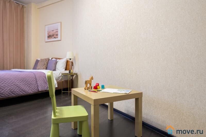 * Квартира полностью оборудована для комфортного пребывания Гостей с детьми: имеется детский столик и стульчик, горшок, сидушка, ванночка, коляска-трость, стул для кормления, развивающий коврик-пазл. Все предоставляется БЕСПЛАТНО
