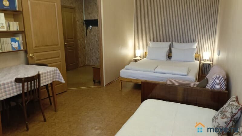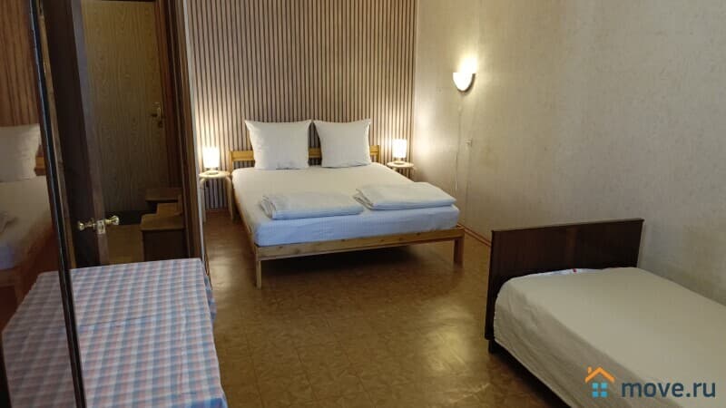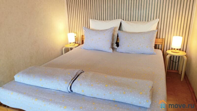 Большая двуспальная кровать (160*200), односпальная кровать (90*190). Новые матрасы с независимыми пружинными блоками. Комплект натурального чистого белья и полотенец (входит в стоимость). Все условия для комфортной работы и отдыха: большой обеденный стол, кресло, кабельное телевидение, беспроводной интернет, плотные шторы, библиотека, настольные игры.