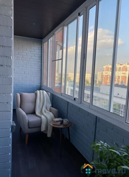 Большая лоджия 6,3 кв.м, которую можно использовать как полноценный кабинет или зону отдыха.