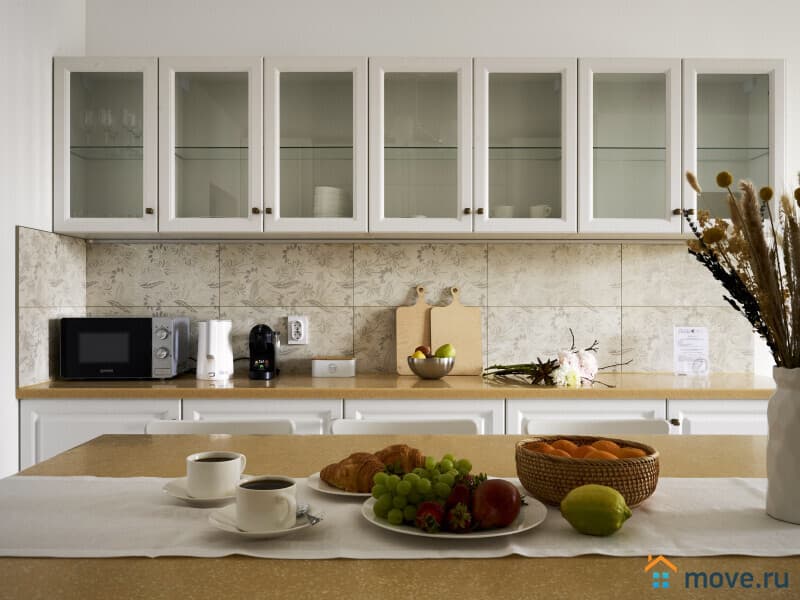 Здесь, в светлой евро-трёхкомнатной квартире вы найдете все для спокойного отдыха: светлую мастер-спальню с отдельным сан. узлом и душем, а также лоджий с видом в тихий двор, просторную гостиную с комфортным двуспальным диваном и ТВ, а также кухонной зоной с многофункциональным островком для приготовления самых вкусных блюд, уютную спальню с двуспальной кроватью, отдельный сан. узел с ванной.