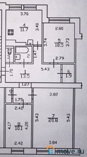 Общая площадь 72,7 кв.м. Изолированные комнаты 20,8 кв.м, 10,1 кв.м и 10,5 кв.м. Кухня площадью 11,7 кв.м. Раздельный санузел. Высота потолков 2,86 м.