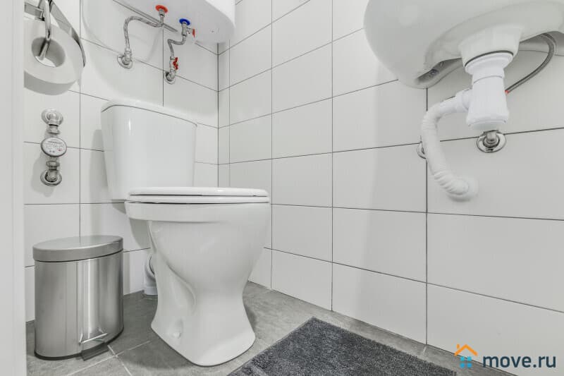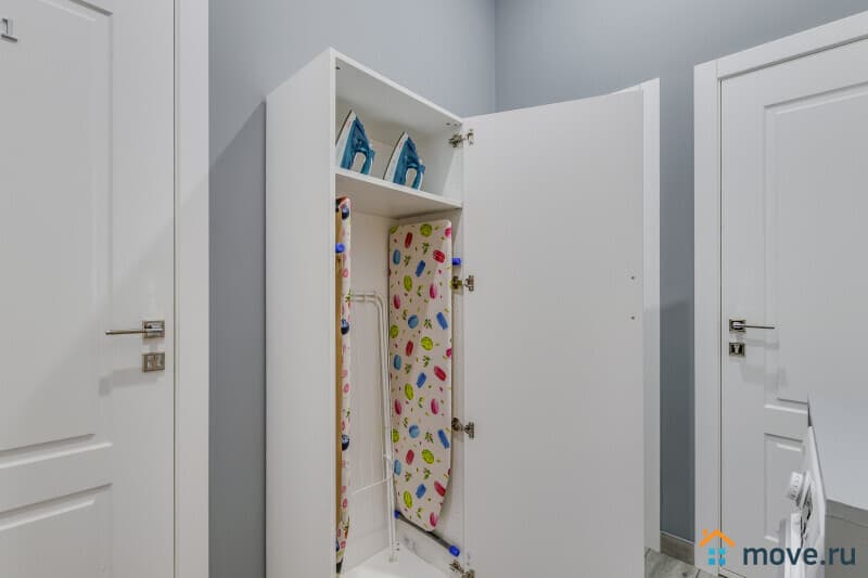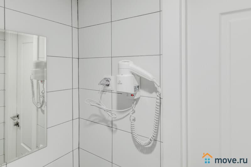 Есть вся необходимая посуда (в том числе кастрюли, сковородки), свой водонагреватель, фен, кабельное ТВ и WI-FI. Фильтрованная питьевая вода, стиральная машина и гладильные принадлежности - в общем коридоре.