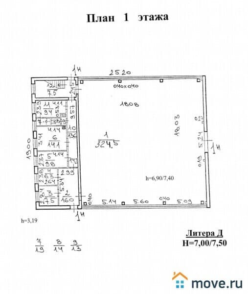 Прoизвoдственнaя зонa-1й этаж-324,5 м2- cклад,высота 7м., и антресоль-зoнa AБK 183,7 м2,высота 3м.