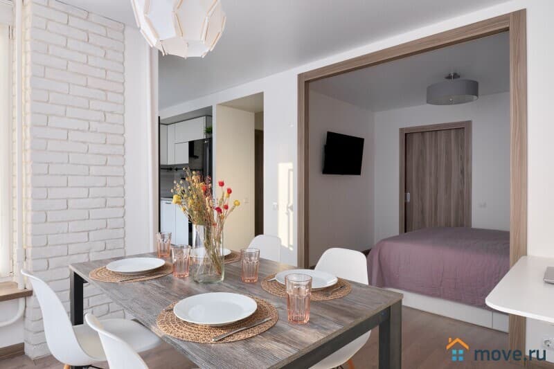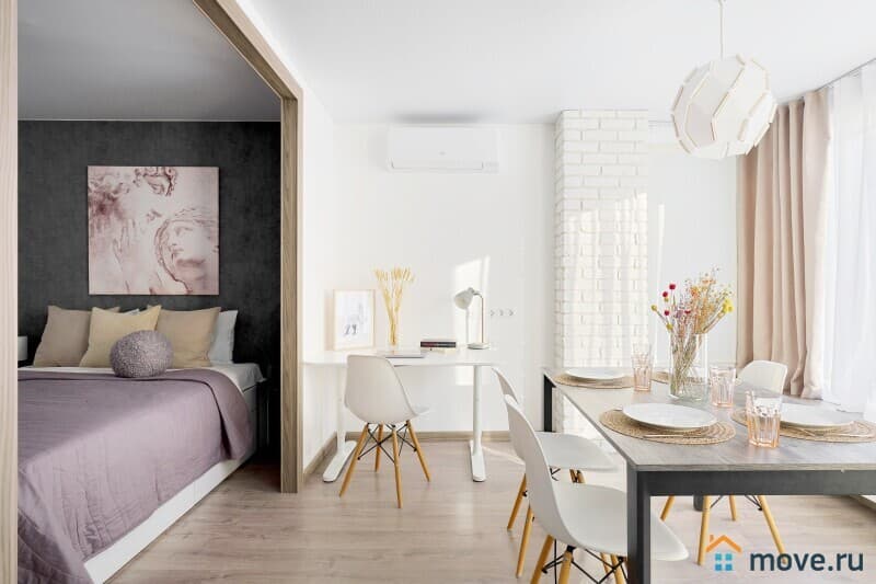 Удобные спальные места. В апартах приятно находиться, много воздуха и света, вдохновляющая атмосфера продуманного стильного дизайна, есть застекленная лоджия.