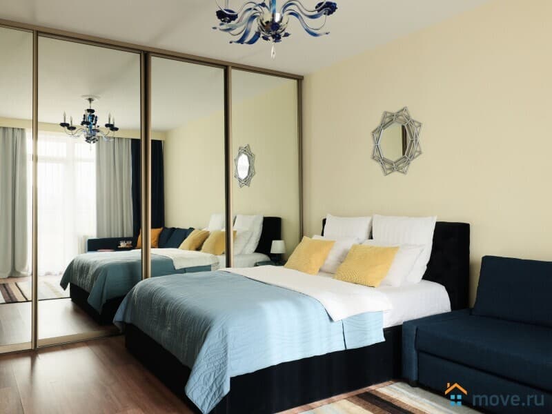 Две полноценные двуспальные кровати с удобными матрасами для глубокого отдыха, а также большой угловой диван-трансформер, который легко превращается в ещё одно комфортное спальное место.