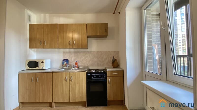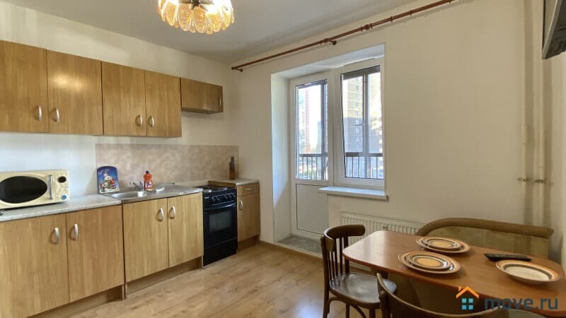 Квартира общей площадью 35.8 м.кв + большой балкон площадью 6 м.кв. Балкон застеклен и имеет два выхода - из кухни и из комнаты.