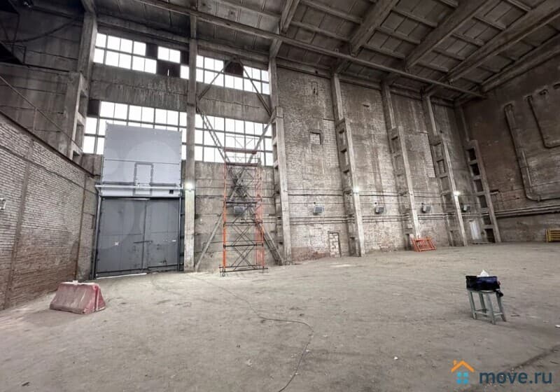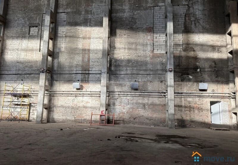 Покрытия пола склада асфальт, высота потолков 17.5 метров, подходит для стеллажного хранения.
