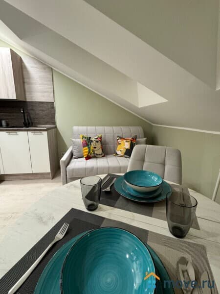 Благодаря грамотной планировке, квартира очень комфортная и удобная, с тремя мансардными окнами.