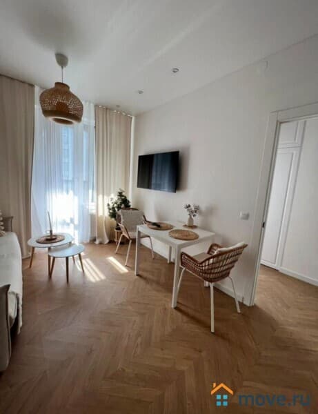Этаж 8/12. Общая площадь 33,3 кв.м + лоджия 3,6 кв.м. Кухня-гостиная 15,1 кв.м, комната 10,3 кв.м, потолки 2,75м. Панорамное остекление лоджии. Окна выходят в просторный, благоустроенный двор. Выполнен качественный евроремонт. Часть мебели и бытовой техники остаётся новому владельцу.