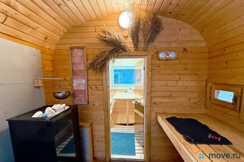 - 2 уникальные бани (бревенчатая на 5 чел. с купелями и баня-бочка с панорамным окном и солью).