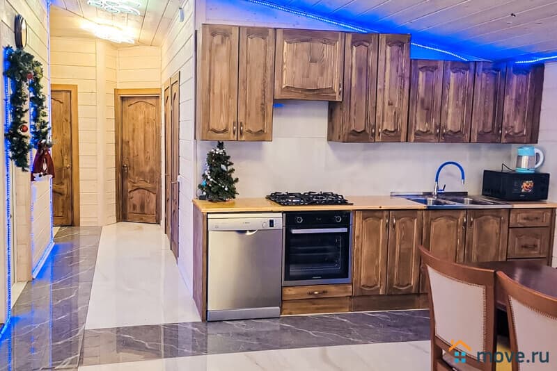 Кухня с плитой, духовым шкафом, микроволновкой, чайником, посудомойкой и посудой на 30 гостей