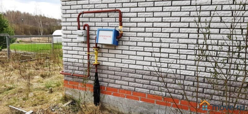 Фундамент – железобетонная плита. В дом введен магистральный газ. Электричество (15 кВт.), и центральное водоснабжение подведены к границе участка.