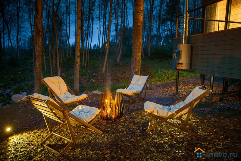 — зона отдыха с костровой чашей и шезлонгами (дрова можно купить у администратора).