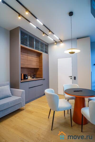 1 этаж: прихожая с гардеробом и стиральной машиной; гостиная-кухня 15 кв.м. с панорамными окнами, раскладным диваном, столом на 4 персоны, Smart TV; по желанию предоставляются караоке, настольные игры, игровая приставка GAME LITE (оплачиваются отдельно).