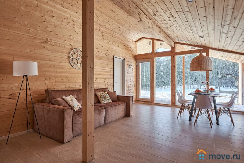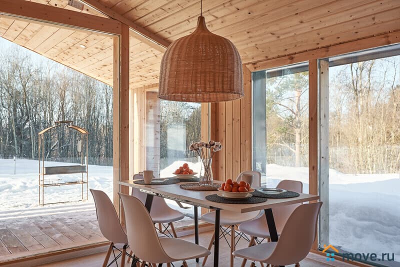 Приглашаем вас в стильный коттедж рядом с д.?Светлое — идеальное место для отдыха душой и телом! Скандинавский дизайн, панорамные окна от пола до потолка и атмосфера уединения в окружении леса подарят незабываемые впечатления.