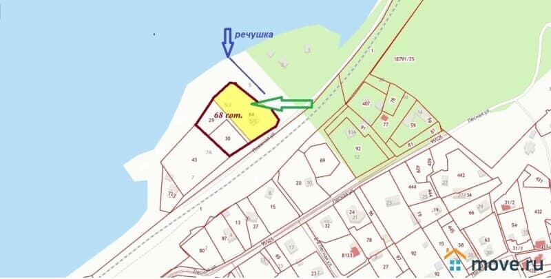 Кстати, можем обсудить участие в совместном благоустройстве подъездной к участку дороги. Можно рассматривать покупку и участка 44 или 68 сот., как указано на планах. Для строительства дома предоставляется СЕМЕЙНАЯ ИПОТЕКА. Торг уместен.