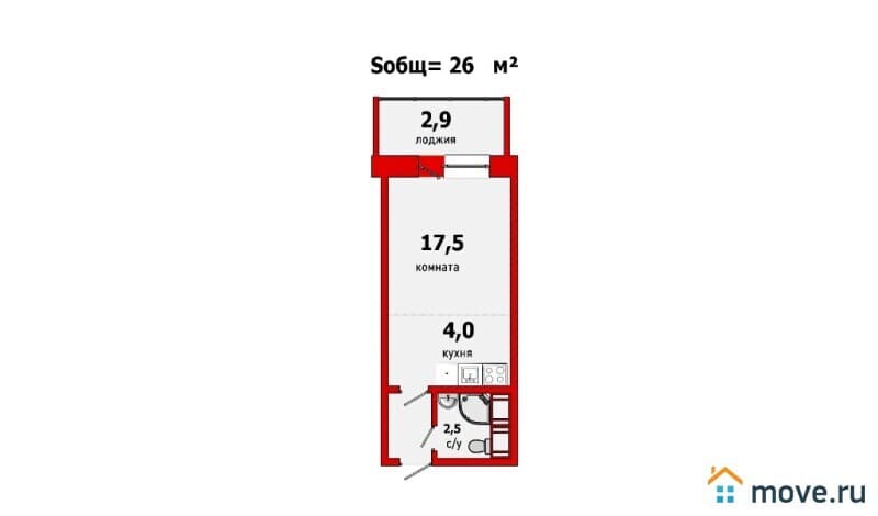 Общая площадь студии 26 кв.м, жилая 17 кв.м. Окна во двор. Квартира в отличном состоянии, продается с мебелью, что позволяет сразу заехать и жить.